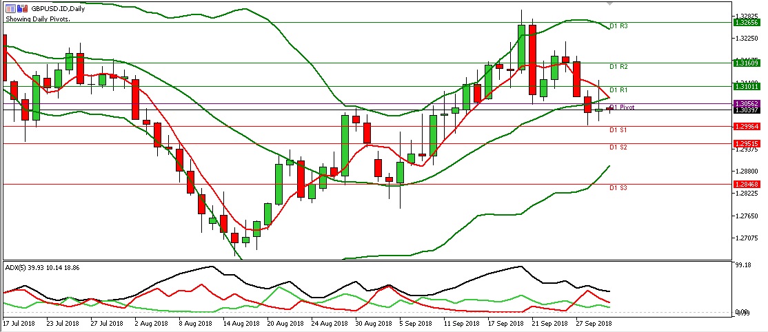 JAVAFX – Kemarin, GBPUSD bergerak turun terlebih dahulu dari pembukaannya di level 1.30364 menuju level 1.30113 kemudian akhirnya naik ke level 1.31160 dan akhirnya di tutup pada level 1.30413. Pagi ini GBPUSD di buka di level 1.30452 (di bawah Pivot Point 1.30562) dan telah turun menuju level 1.30248. Namun berdasarkan harian, GBPUSD masih dalam trend turun karena masih dipengaruhi penguatan Dolar AS akibat kenaikan suku bunga. Data konstruksi IMP Inggris pada sore nanti diprediksi dapat menggerakkan GBPUSD malaupun hanya di sesi Eropa saja sebelum Powell Gubernur The fed memberikan pernyataannya kembali pada malam ini.