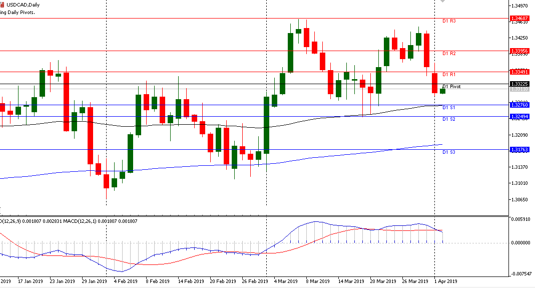 Jika penurunan tertahan oleh support, maka USDCAD berpeluang rebound dengan kemungkinan naik terbatas pada Pivot Point daily dilevel 1.33225 dan $1 daily dilevel 1.33491.