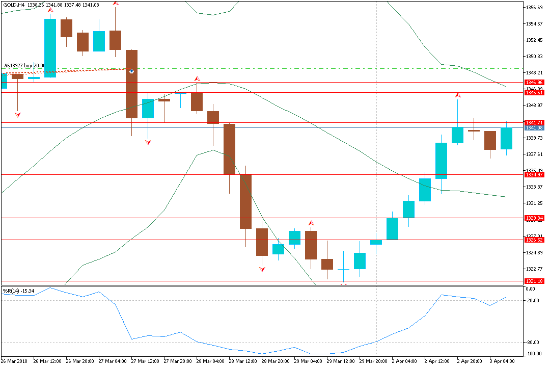 Pergerakkan yang tersaji di H4, Gold terlihat mencoba kembali menembus area resisten dua di sesi sebelumnya pada level 1341.71. Apabila tembus, maka pergerakkan harga emas berpotensi mengusik target resisten tiga di area 1346.61-1346.96.