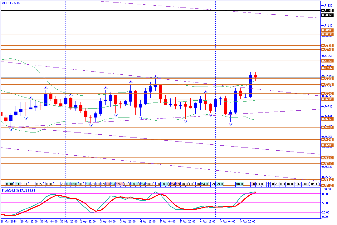 Setelah candlestick terakhir pada grafik H4 berpola bullish, AUDUSD berpeluang mendobrak area resisten 0.77447-0.77569. Jika break dan bergerak di atas 0.77569, membuka kans mengusik area resisten 0.77763-0.77833. Target berikutnya menguji area resisten 0.78030-0.78103 dan resisten kuat short term, 0.78360-0.78443. Target lanjutan, 0.78653-0.78760 dan 0.79077-0.79152