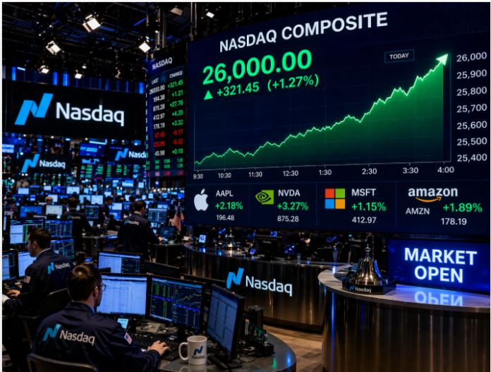 Javafx.co.id-Memasuki perdagangan Jumat, 17 April 2026, Nasdaq terlihat bergerak stabil di area tinggi setelah reli yang kuat sebelumnya, mencerminkan fase konsolidasi pasar. Sektor teknologi, khususnya yang berkaitan dengan pengembangan kecerdasan buatan (AI), masih menjadi penopang utama indeks, dengan minat investor terhadap saham growth tetap solid. Selain itu, meredanya ketegangan geopolitik di Timur Tengah turut mendorong sentimen risk-on dan menjaga kekuatan pasar.