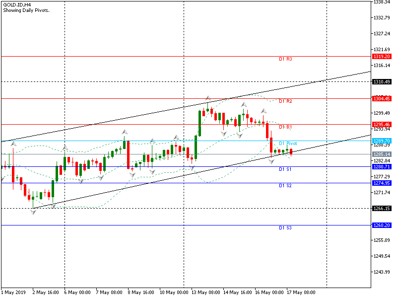 Tendensi menurun GOLD pada grafik H4 masih terbuka dengan sasaran terdekat support 1280.71. Jika break out, memungkinkan test support kritis 1274.95