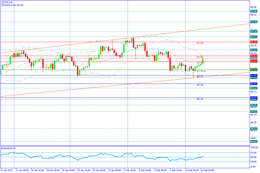 Jejak naik OIL pada grafik H4, berpotensi menembus resisten kritis pada level 53.63.