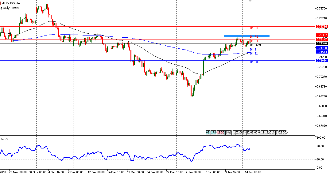 Koreksi turun bisa terjadi jika masih belum berhasil lewati 0.72331, koreksi turun dibatasi oleh support 0.71720 dan support berikutnya di 0.71513.