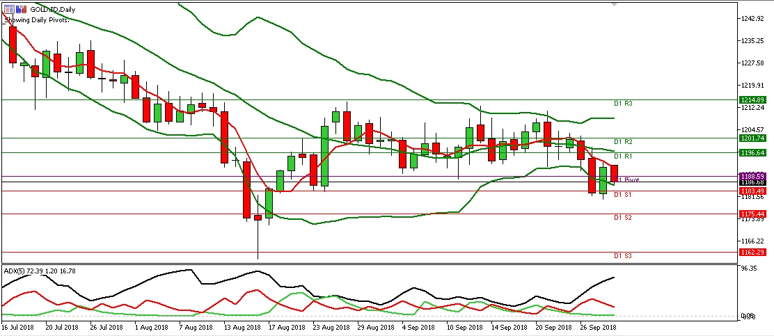 Secara teknikal, Gold diprediksi dapat terus melemah menuju support satu pada level 1183.49 dan jika tidak dapat menembus level terendah kemarin di level 1180.55, maka Gold diprediksi akan kembali naik mendekati level 1188.59 pada pivot.