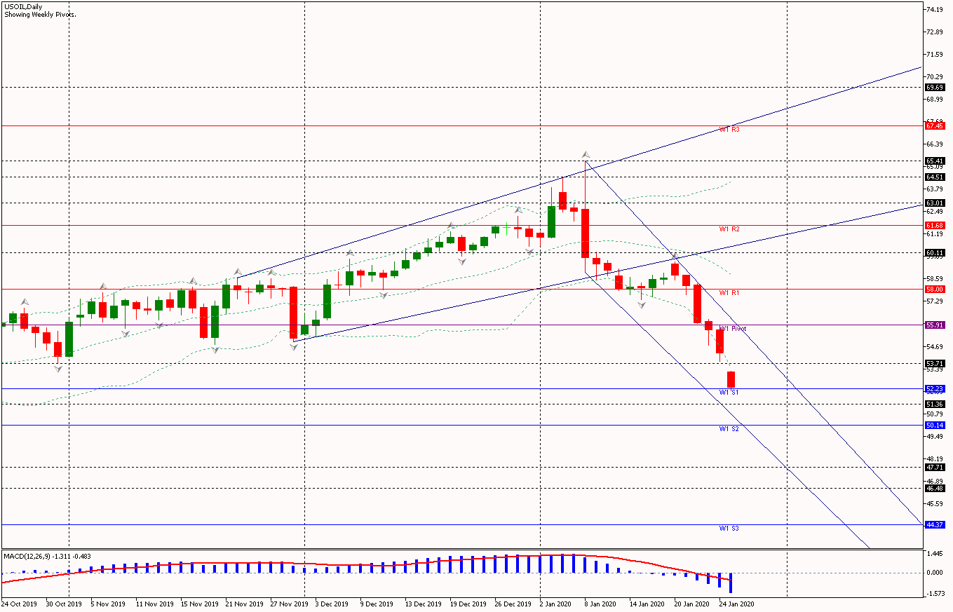 Ditandai dengan open gap menurun pada grafik Daily, candle aktual OIL berpotensi menembus support 51.36 dan support kritis 50.14.Ekstensi dominasi sellers di bawah 50.14 akan mempertajam bias bearish OIL. Target berikutnya menguji support 47.71 dan 46.48.Support kuat pada level 44.37.