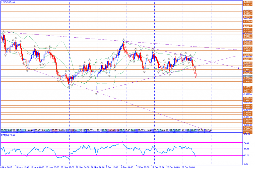 Tekanan jual yang mendera USDCHF pada grafik H4 berpotensi menguji support kritis pada area 0.97572-0.97334. Intensitas jual di bawah 0.97334 bila disangga konsistensi RSI melaju pada zona jual akan memicu menuju support moderat 0.97043-0.96929, lalu test support lanjutan 0.96689-0.96582 dan 0.96345-0.96245. Support kuat pada area 0.96000-0.95860.