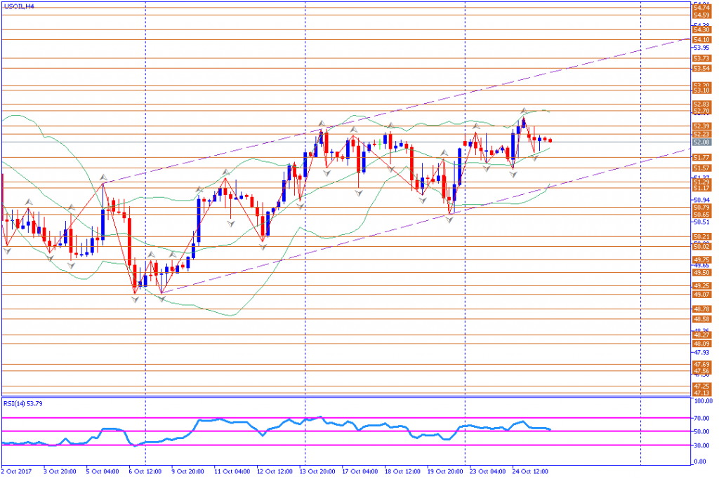 Secara general, perspektif bias bullish USOIL masih berlaku sebagaimana terdeteksi pada grafik H4. Namun saat ini fase konsolidasi sedang berlangsung dan jika terjadi koreksi menurun akan menjumpai perlawanan awal pada support minor 51.77-51.57. Bila tembus dan USOIL melaju di bawah 51.57, rentan tergelincir menuju support kritis 51.29-51.17. Dominasi sellers di bawah 51.17 bila disertai jejak menukik RSI di bawah level 50, akan mengembalikan perspektif bias bearish short term USOIL, dengan test berikutnya support moderat 50.79-50.65. Support kuat short term, 50.21-50.02.